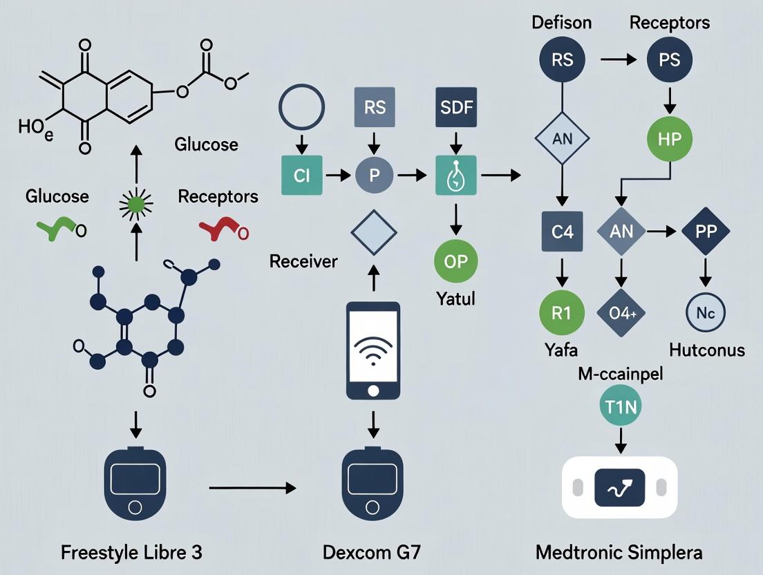 This article provides a comparative analysis of the three leading continuous glucose monitoring (CGM) systems—FreeStyle Libre 3 (Abbott), Dexcom G7 (Dexcom), and Medtronic Simplera—tailored for researchers, scientists, and drug development professionals. We move beyond basic patient features to explore the foundational technologies, unique sensor and transmitter designs, and core algorithms that generate raw data streams. The analysis covers critical aspects for R&D, including sensor performance metrics (MARD, data reporting intervals), real-world data collection methodologies, application in clinical trials and pharmacodynamics studies, data access protocols, common data anomalies, and system-specific optimization strategies. A comprehensive, data-driven validation and comparative section examines head-to-head accuracy studies, reliability in extremes (hypoglycemia, hyperglycemia, rapid glycemic excursions), interoperability with research platforms, and the implications of sensor lifetime and form factor. This guide is designed to inform protocol design, endpoint selection, and technology partnership decisions in biomedical research.