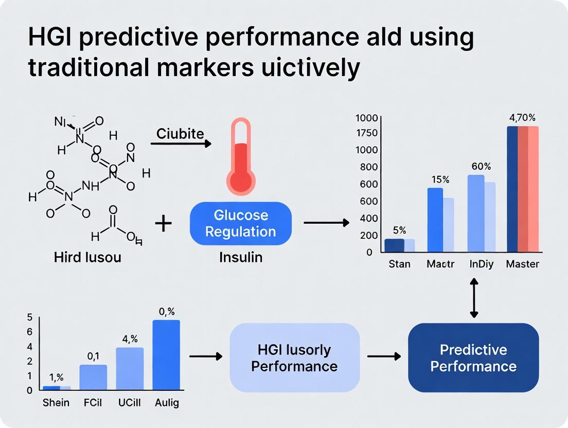 The evidence indicates that HGI represents a powerful, complementary tool to traditional biomarkers, often capturing distinct, polygenic components of disease risk and therapeutic response that single-marker assays miss. While traditional biomarkers offer established, often more immediately actionable, clinical correlates, HGI provides a broader genomic context that can enhance predictive accuracy, particularly for complex traits. The future of predictive performance lies not in choosing one over the other, but in strategically integrating HGI with high-performing traditional markers into multi-modal models. For biomedical research, this necessitates standardized validation protocols, improved methods for clinical translation of polygenic scores, and continued investment in diverse, large-scale cohorts to refine these tools. Ultimately, this integration promises to advance precision medicine by enabling more robust patient stratification, de-risking drug development, and personalizing therapeutic strategies.